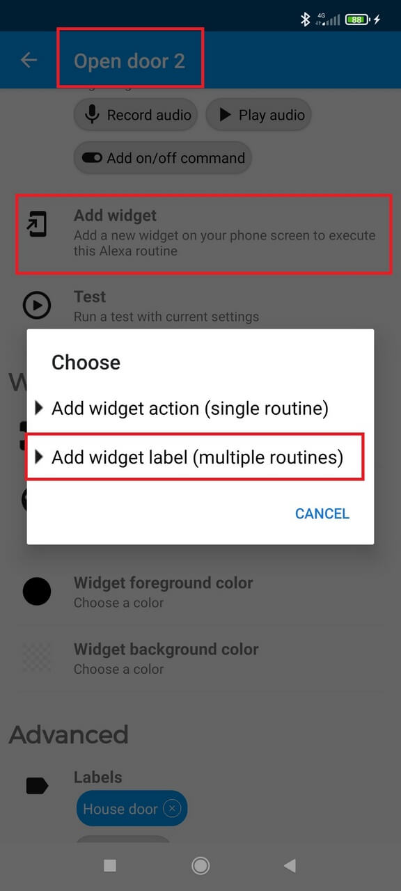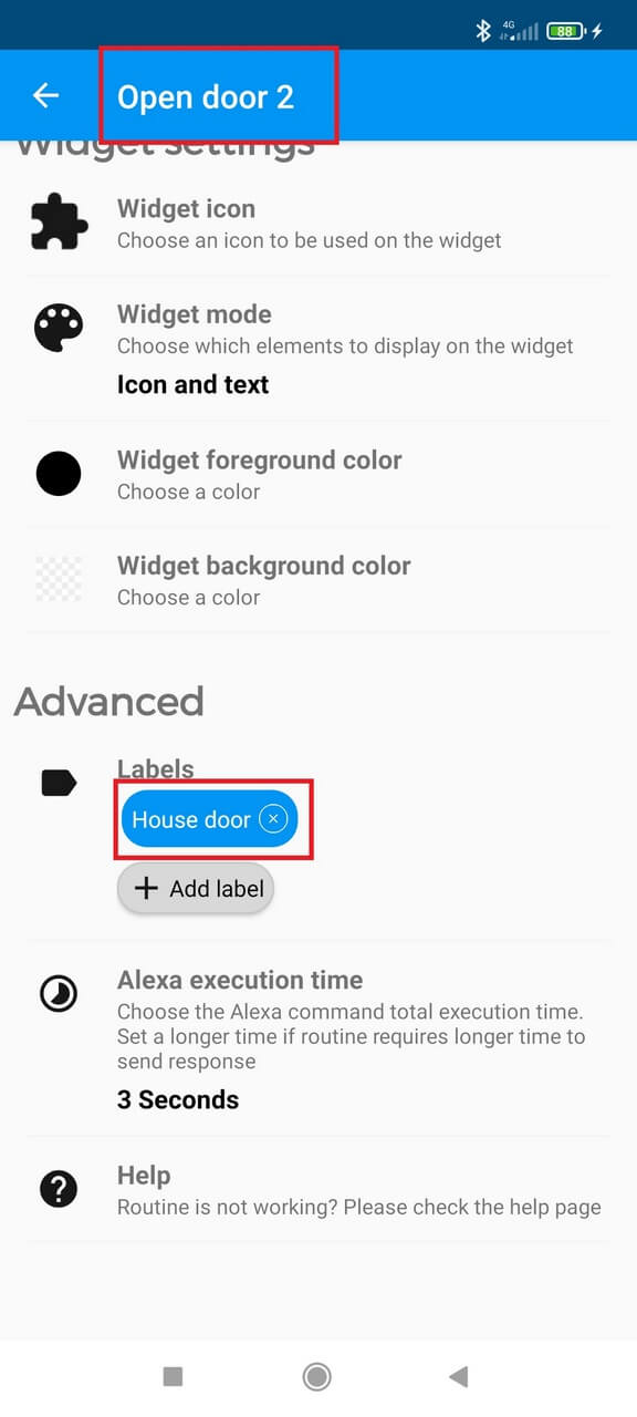 Create the first routine, for example "open door".